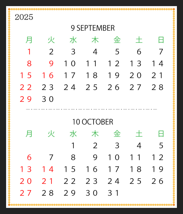 9月・10月のカレンダーです。